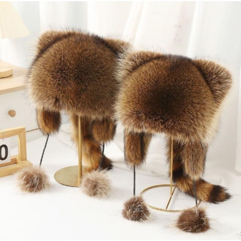Осенне-зимняя новая мужская и женская маленькая щелочная защита ушей с хвостом, имитация шерсти енота, кошачьи уши, лисья шапка, утолщенная теплая шапка Child (adjustable)