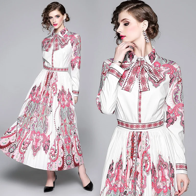 Women Printed Midi Dress Vintage A-line Midi Dress with Long Sleeve O-neck for Women Elegant Autumn Streetwear Fashion Unique