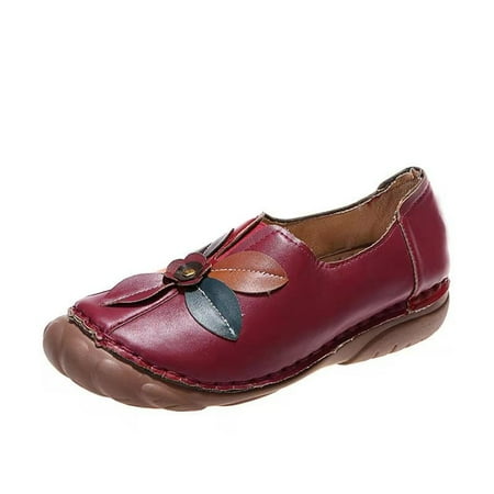 NECHOLOGY Wedding Flats Fashion Flower Women s Flat Mouth Single Shoes Round Loafers Holiday Shoes for Women Flats Red 9.5