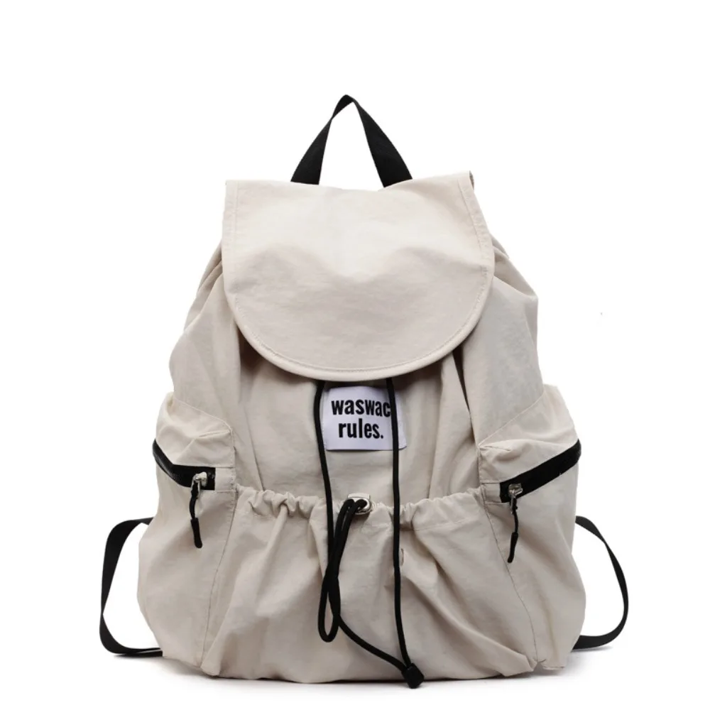 Solid Color Drawsting Backpacks Light Weight Large Capacity Ruched Shoulder Bags Nylon Casual Student Schoolbag Men Women