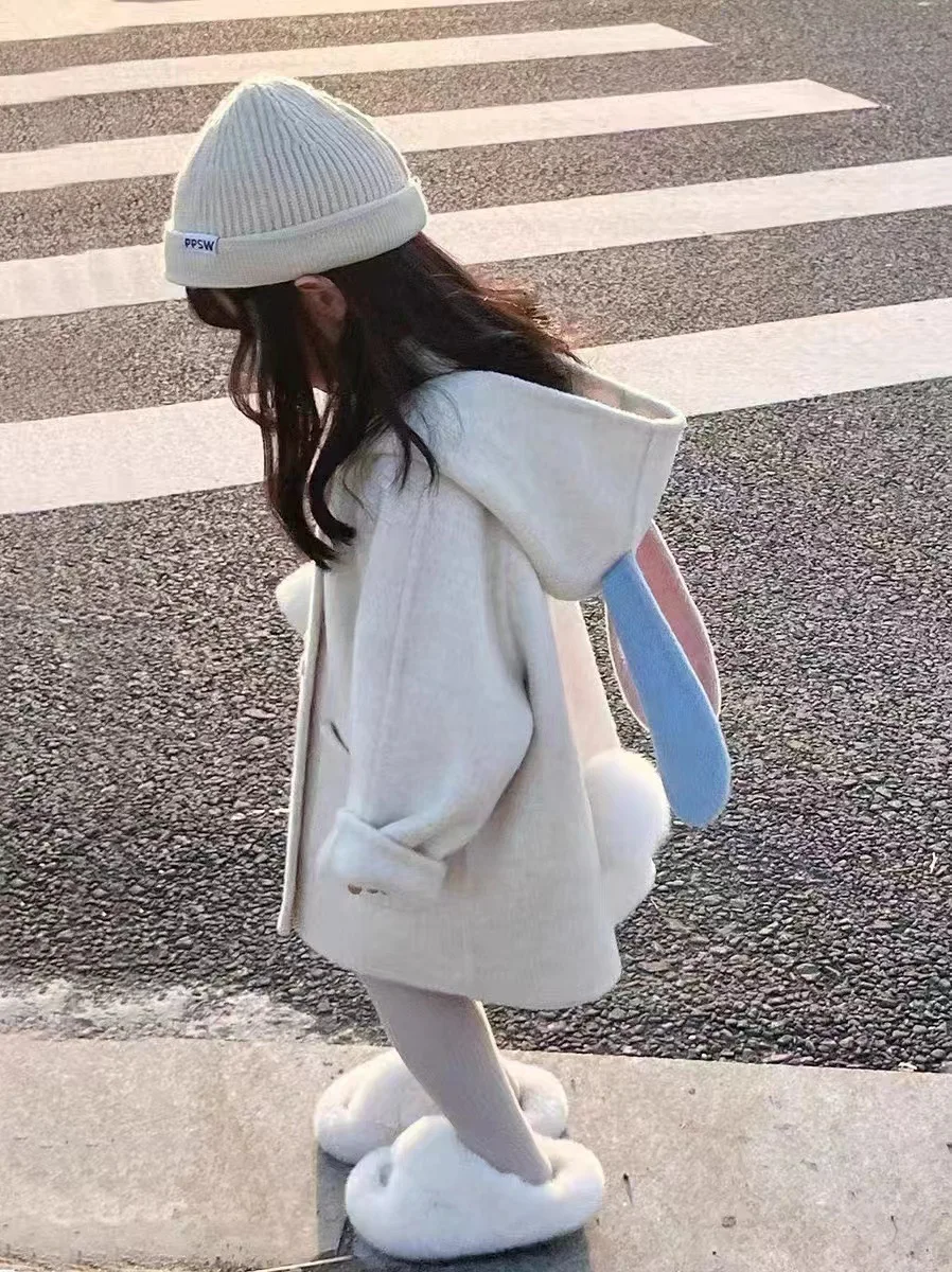 Осенне-зимняя одежда, модные детские пальто на день рождения, одежда 2025 года, милые пальто с капюшоном и длинными ушками для маленьких девочек, бархатные теплые