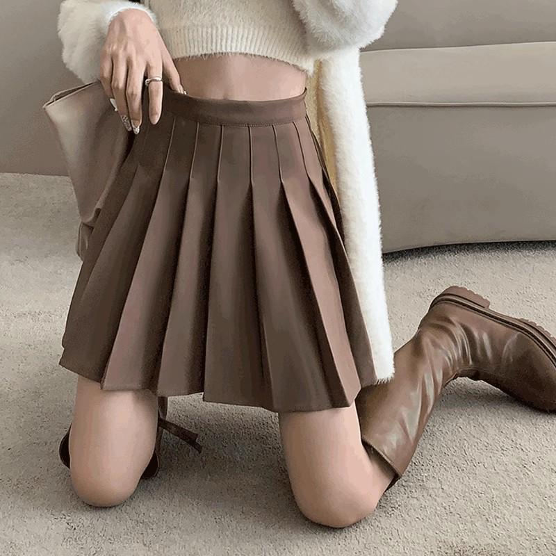 Осенне-зимняя плиссированная юбка А-силуэта большого размера - Кофейного цвета, с высокой талией, в стиле преппи 2XL