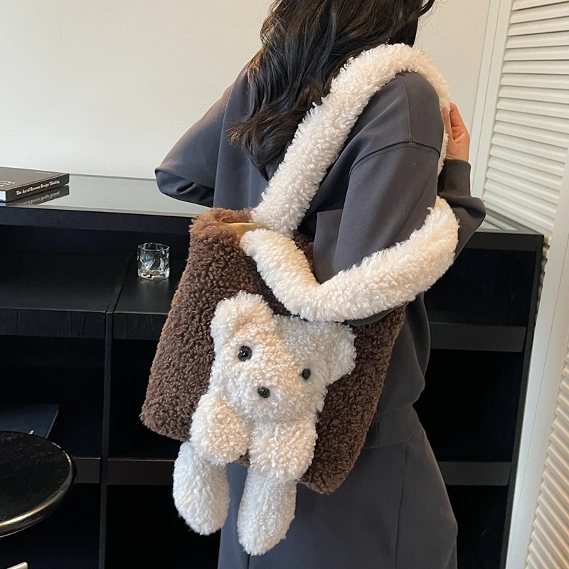 Осенне-зимняя плюшевая космическая сумка с хлопковым наполнителем и плюшевым мишкой для женщин, милая японская и корейская сумка на одно плечо с мультяшным рисунком