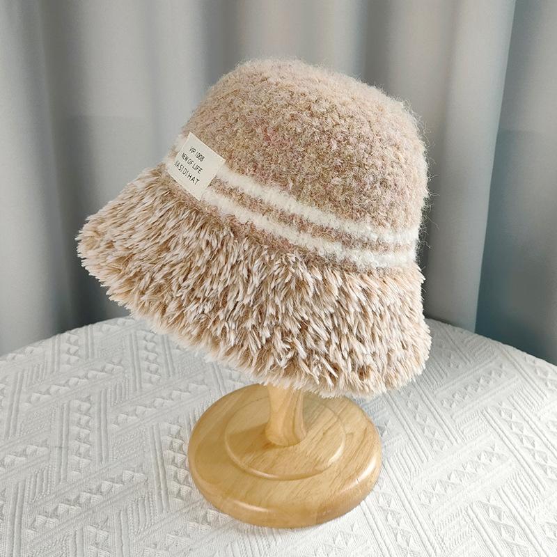 Осенне-зимняя плюшевая теплая ветрозащитная шапка женская вязаная панама-ведро с эффектом маленького лица, универсальная панама-ведро