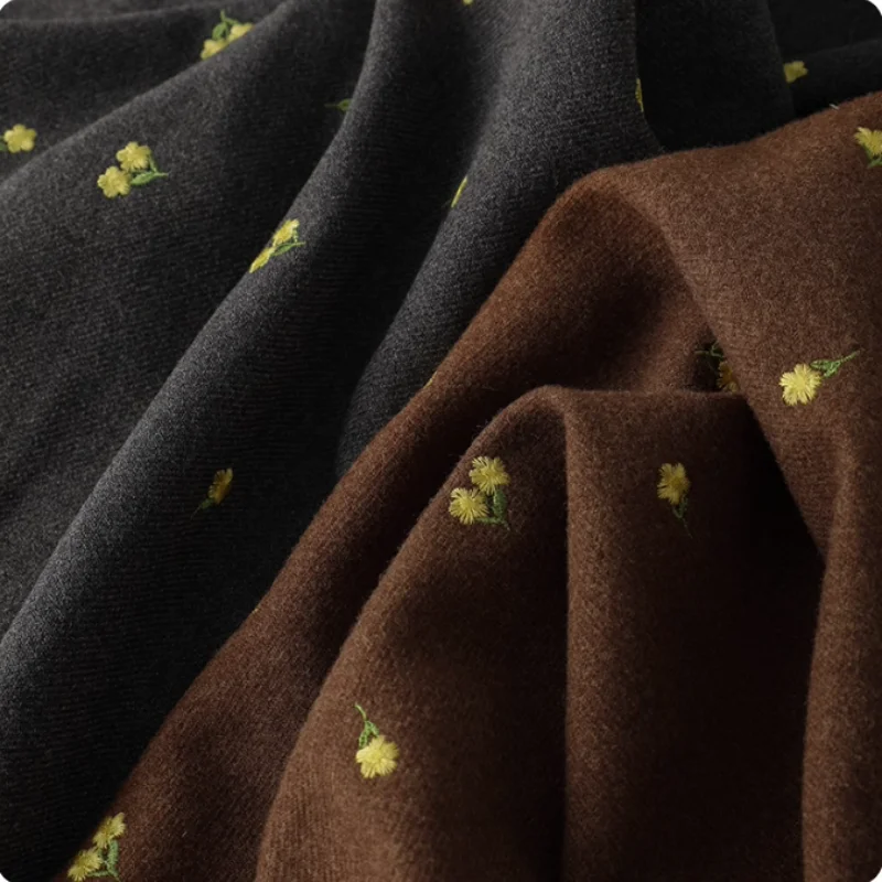 Осенне-зимняя полиэфирная ткань с вышивкой ромашки для пальто, жилетов, юбок, детской одежды, ткань ручной работы