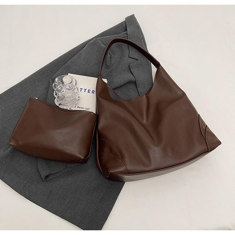 Осенне-зимняя ретро сумка большой вместимости женская 2025 новая сумка-тоут для поездок на работу текстурная универсальная на плечо сумка-ведро кофейный