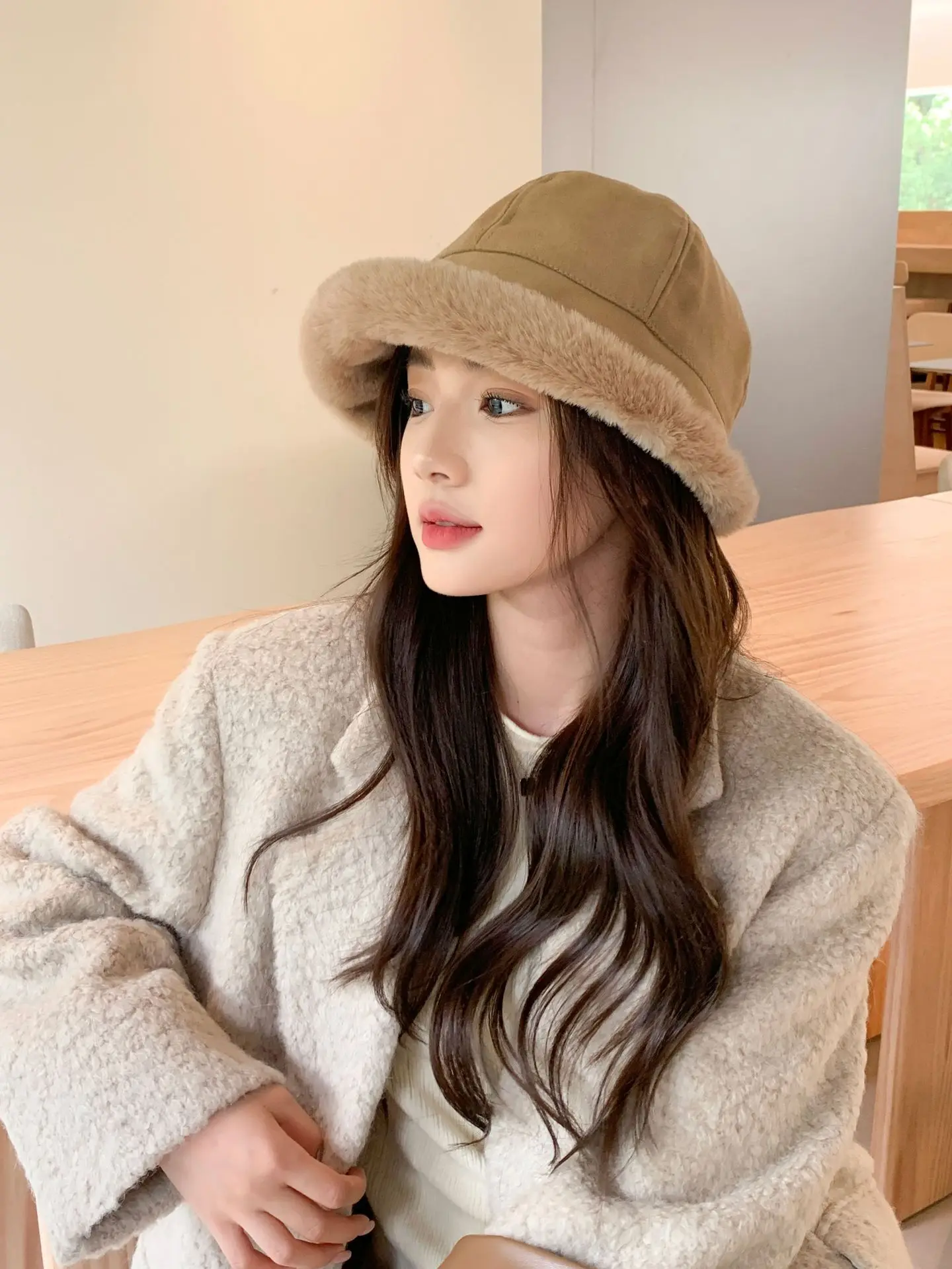 Осенне-зимняя теплая шляпа-ведро, шестигранная утолщенная плюшевая шапка, корейский стиль, универсальная шляпа для бассейна, модная маленькая лицевая сторона