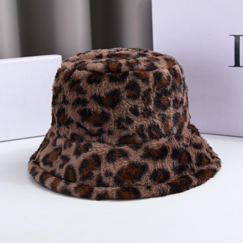 Осенне-зимняя толстая шапка рыбака с леопардовым принтом и флисом, модная и универсальная шапка-тазик, которая выглядит маленькой на лицеШапки и кепки женские One size