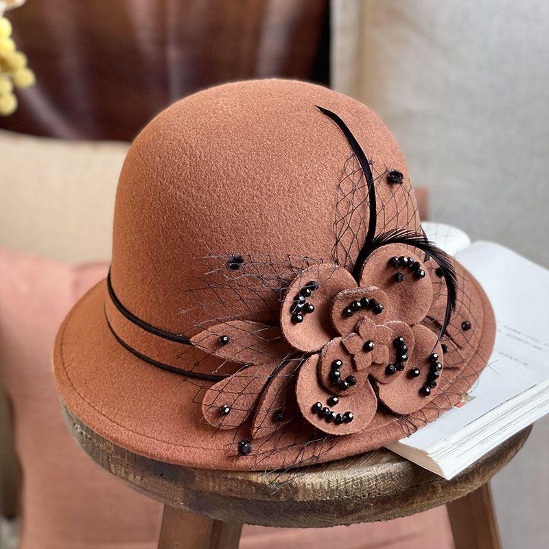 Осенне-зимняя фетровая шляпа для женщин, круглый верх, однотонная, в корейском стиле, модная женская шляпа с цветочным узором one size