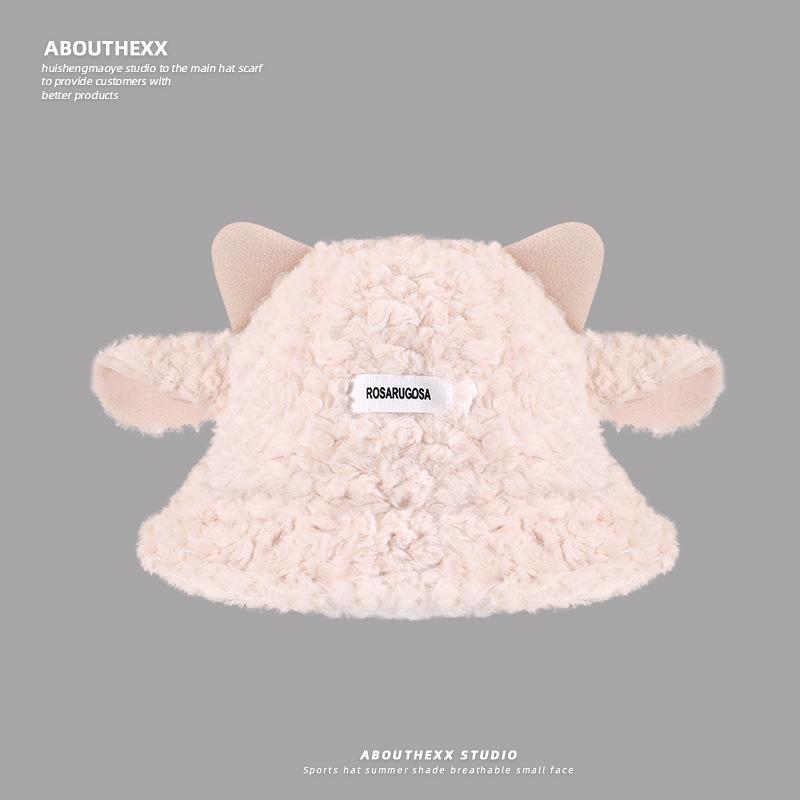 Осенне-зимняя шапка в корейском стиле, делающая лицо маленьким, для женщин, из плюша ягненка, шляпа рыбака, милая в японском стиле, теплая и универсальная шляпа-панама из ягненка M(56-58cm)