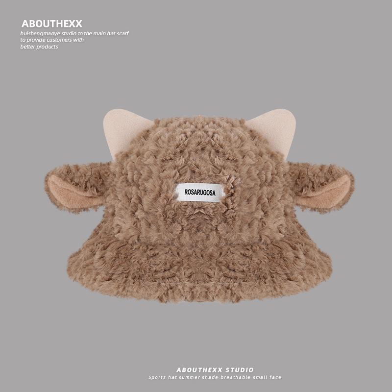 Осенне-зимняя шапка в корейском стиле, делающая лицо маленьким, для женщин, из плюша ягненка, шляпа рыбака, милая в японском стиле, теплая и универсальная шляпа-панама из ягненка M(56-58cm)