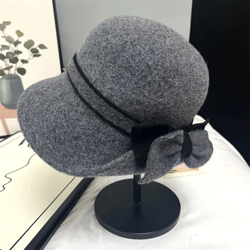 Осенне-зимняя шерстяная шапка с бантом Рыбацкая шапка Южнокорейская версия шапки для сохранения тепла Темпераментная Женская шапка для раковины