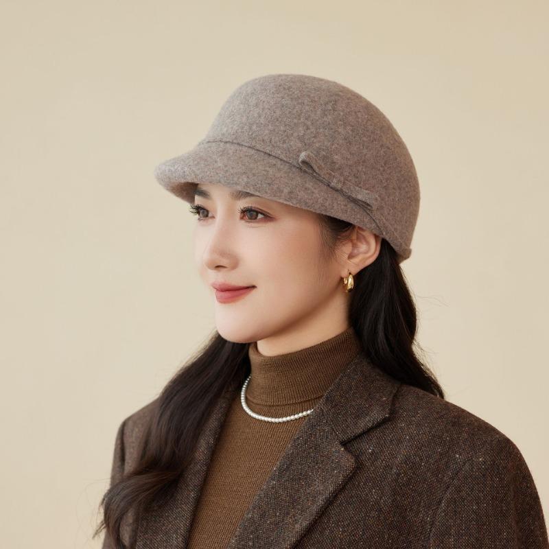 Осенне-зимняя шерстяная шляпа для верховой езды женская, высококлассная, с бантом, элегантная, ретро-кепка M(56-58cm)