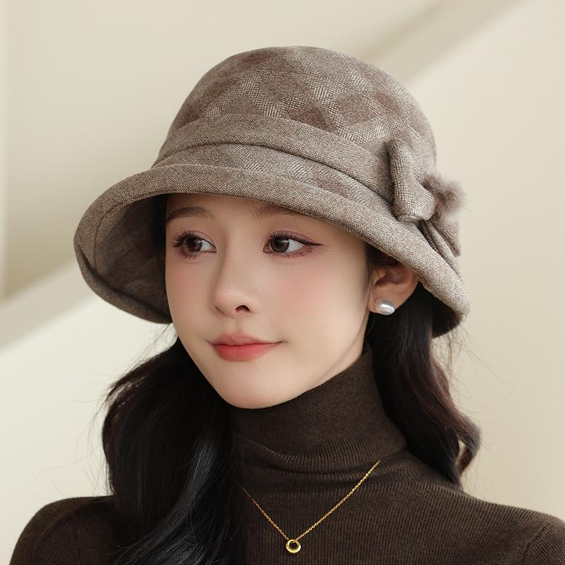 Осенне-зимняя шляпа Женская шляпа-котелок Теплая шляпа-цилиндр Для пожилых Шерстяная шляпа-ведро one size хаки