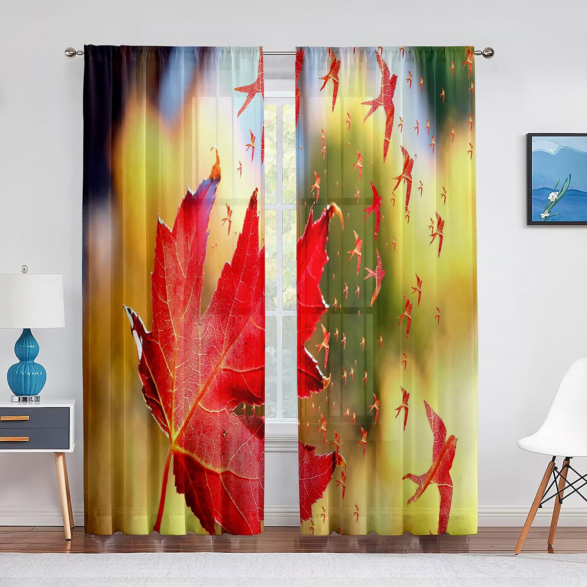 Осенне-осенний сезон кленовые листья оранжевая прозрачная занавеска для гостиной вуаль для оконных жалюзи спальня тюль драпировка кухонная занавеска 1 PCS W100XH250cm&Rod Pocket