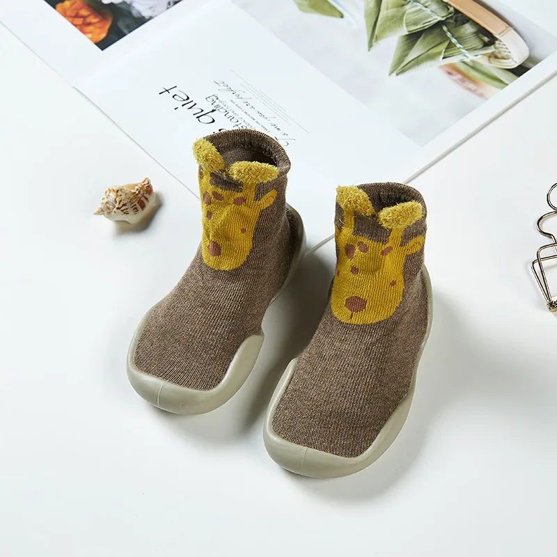 Осенние домашние детские носки с принтом для девочек, обувь для малышей, нескользящая детская обувь на мягкой подошве, милые детские носки среднего размера для малышей