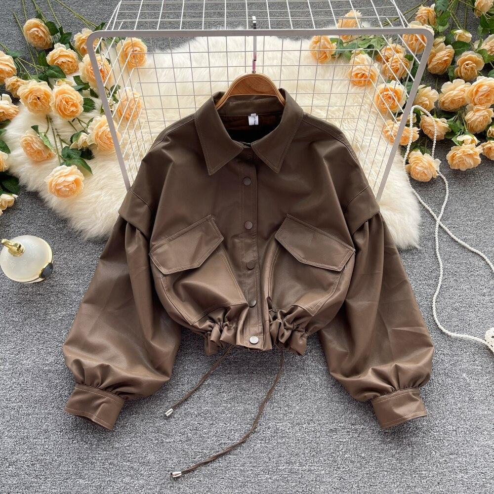 Осенние и зимние модели. Свободная однобортная рабочая ветровая короткая куртка с лацканами и длинными рукавами. Индивидуальный дизайн.