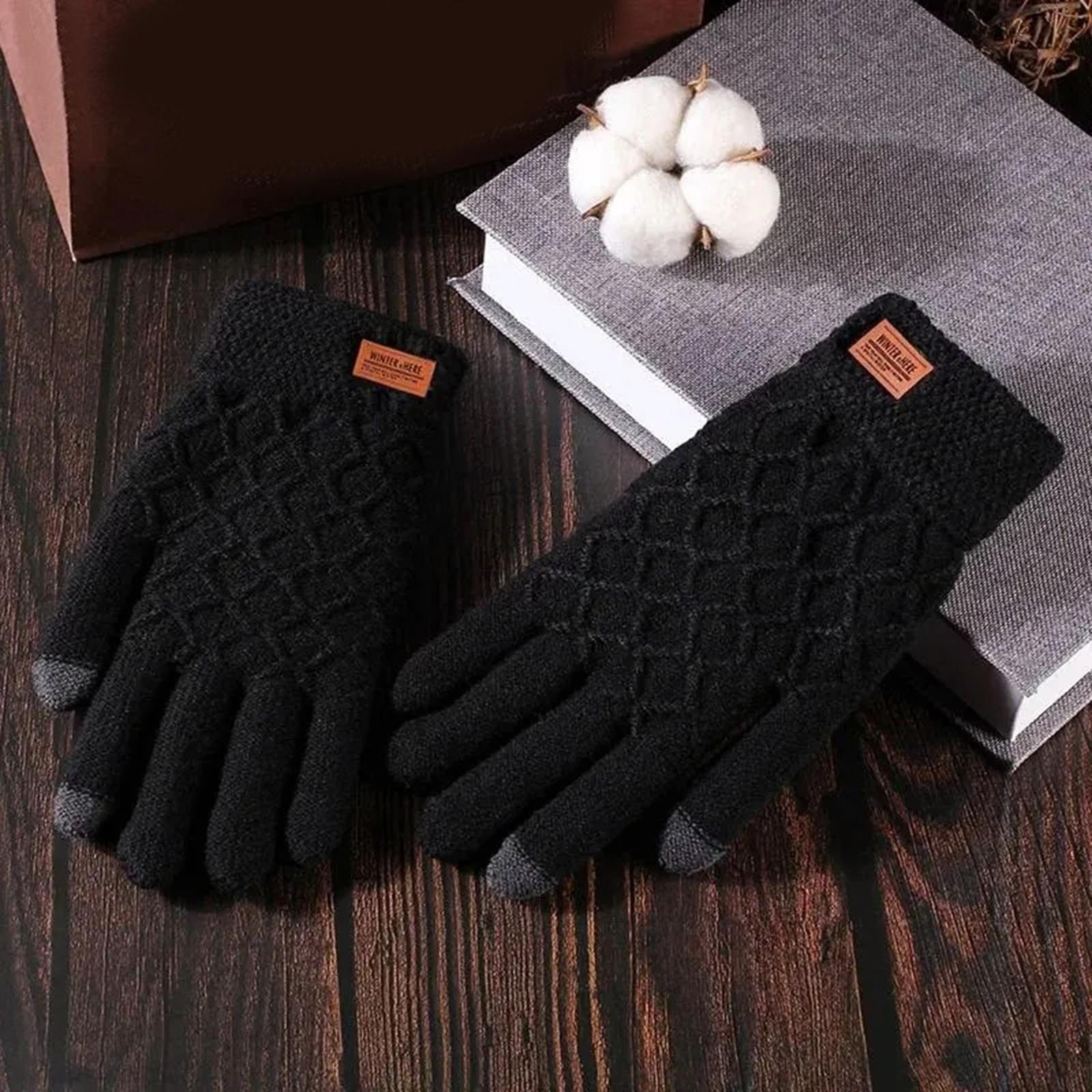 Осенние и зимние теплые лыжные перчатки, кашемировые вязаные перчатки для взрослых, утолщенные холодные перчатки с экраном One Size чёрный