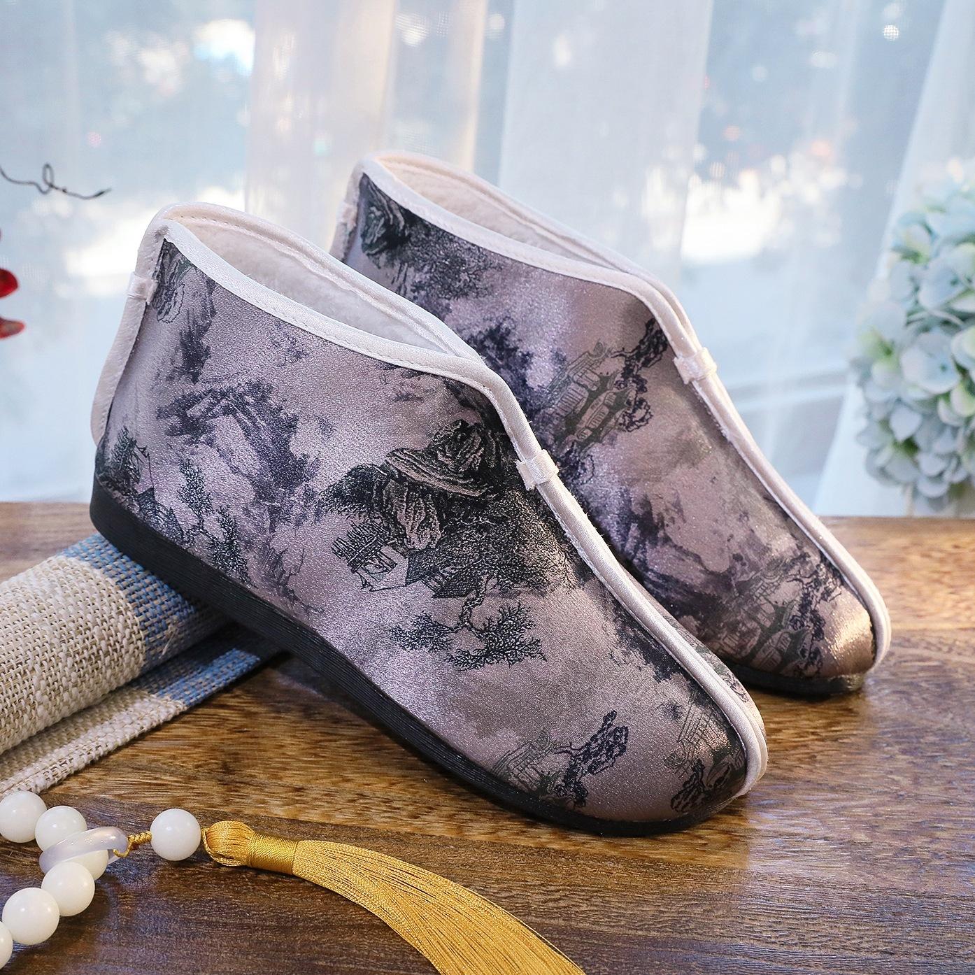 Осенние и зимние туфли из хлопка с принтом, старые пекинские тканевые туфли, обувь для людей среднего и пожилого возраста, обувь для пожилых людей с вышивкой в ретро-стиле, мягкая подошва, нескользящая для мам 40 серый