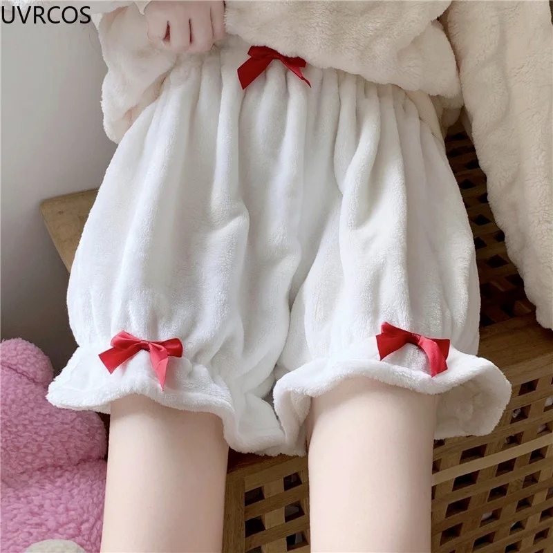 Осенние милые флисовые шорты кораллового цвета, женская зимняя теплая плюшевая пижама в стиле "Лолита", шорты, милая верхняя одежда для дево...