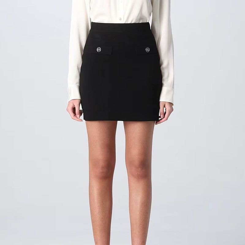 Осенний Дом Солнца Новое поступление Экспортная мода М Дом Тяжелая промышленность Чжу Вязаная юбка Короткий рукав Женская одежда Юбка для похудения Black S (European code): Waist circumference 70-78