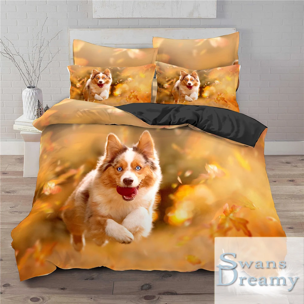 Осенний комплект постельного белья Happy щенок с 3D принтом, пододеяльники, наволочки, королева, двуспальная Удобная простыня, милое одеяло для...
