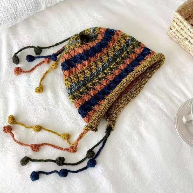 Осенний нишевый цвет дофаминовый зимняя шапка женская теплая шапка-пуловер с бахромой модная вязаная шапка шерстяная шапка