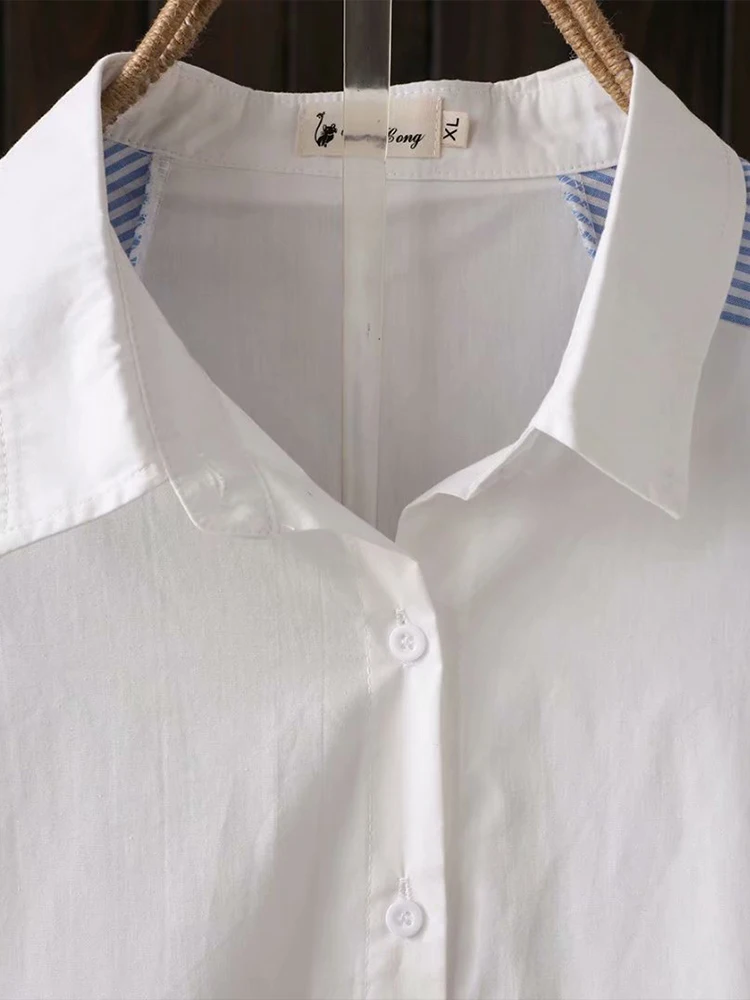 Осенняя Женская Полосатая белая хлопковая рубашка в стиле пэчворк с отложным воротником и рукавом «летучая мышь», свободная Длинная блузка...