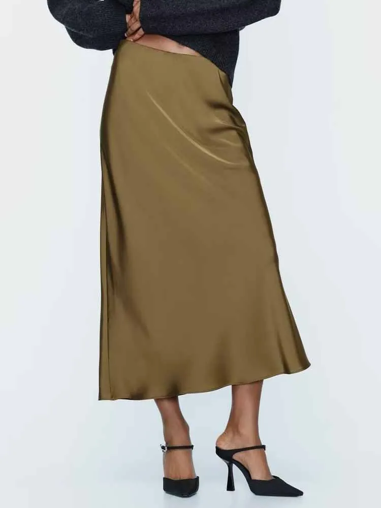 Осенняя Новая женская модная Европейская и американская Повседневная универсальная модная эластичная шелковая атласная юбка миди