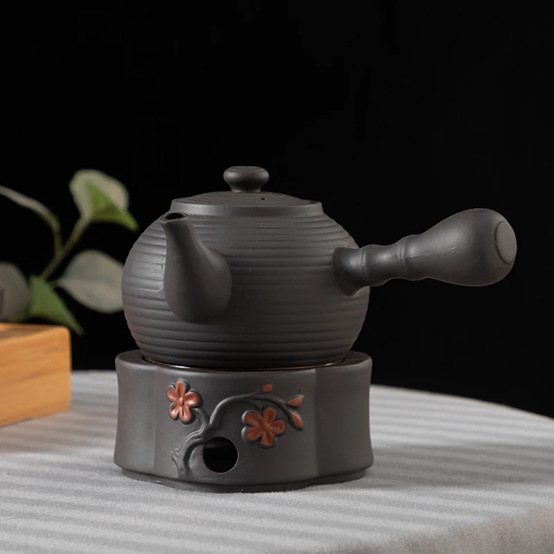 Керамический чайник 580 мл для домашнего использования, Vermilion, ретро, боковая ручка, ребристый чайник с фильтром, чайник, один горшок, чайник для кунг-фу