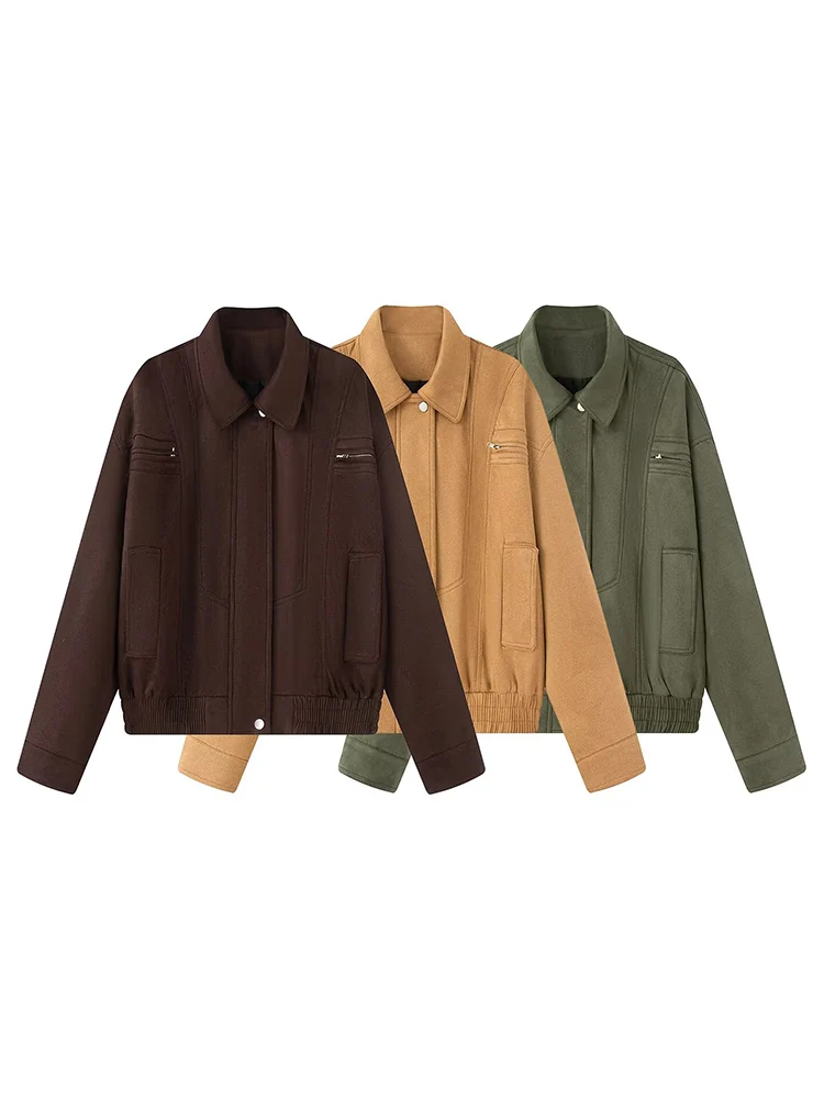 Осенняя женская американская ретро милая крутая стильная мотоциклетная куртка с лацканами и длинными рукавами на молнии в стиле спецодежды