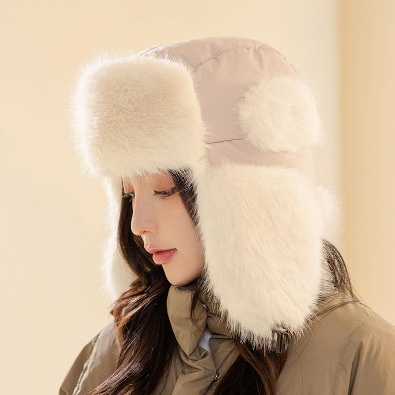 Осенняя женская модная мягкая защитная шапка для ушей, плюшевая, зимняя, теплая, утолщенная, универсальная, для активного отдыха, для езды на велосипеде и катания на лыжах One size бежевый