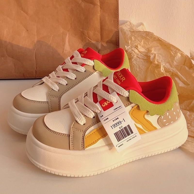 Осенняя женская обувь обувь-гамбургер нишевая обувь 2025 новые маленькие белые туфли универсальные шикарные туфли с большой головой хлебные туфли спортивная обувь 40