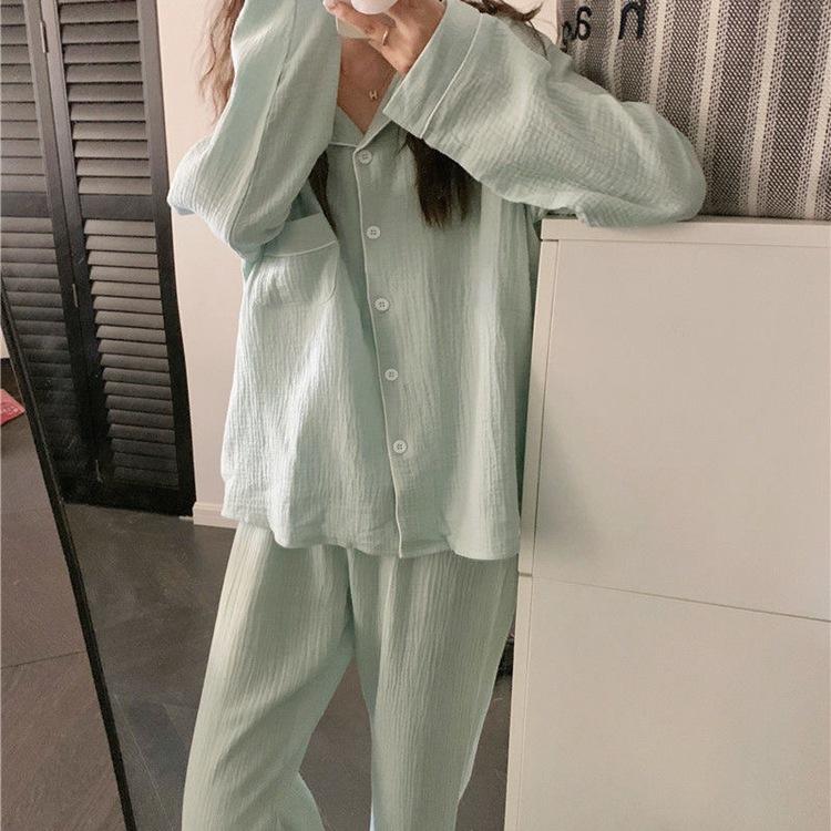 Осенняя женская пижама с длинными рукавами, домашняя одежда, комплект милых девочек, длинные брюки, пижама, повседневная домашняя одежда из хлопка с пузырьками L зелёный
