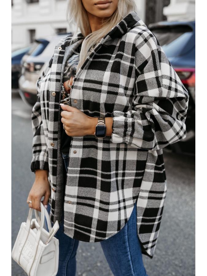 Осенняя клетчатая куртка с капюшоном в евро-американском стиле 2024 года с боковыми разрезами - средней длины, уличный стиль XL