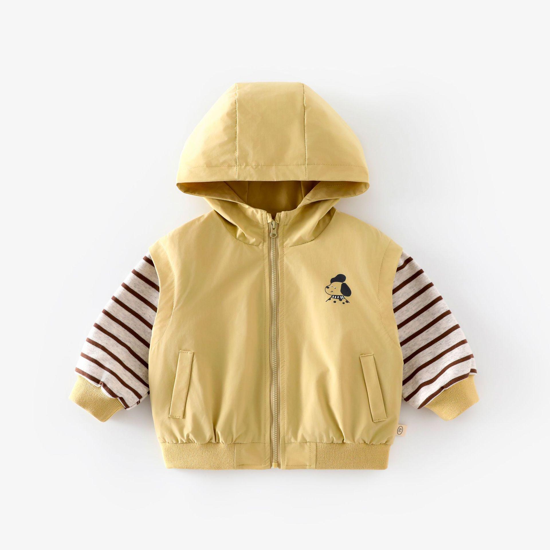 Осенняя куртка для мальчиков 2025 года в полоску, пэчворк, с капюшоном - Модный двухкомпонентный образ для детей 100 лаймовый/жёлтый