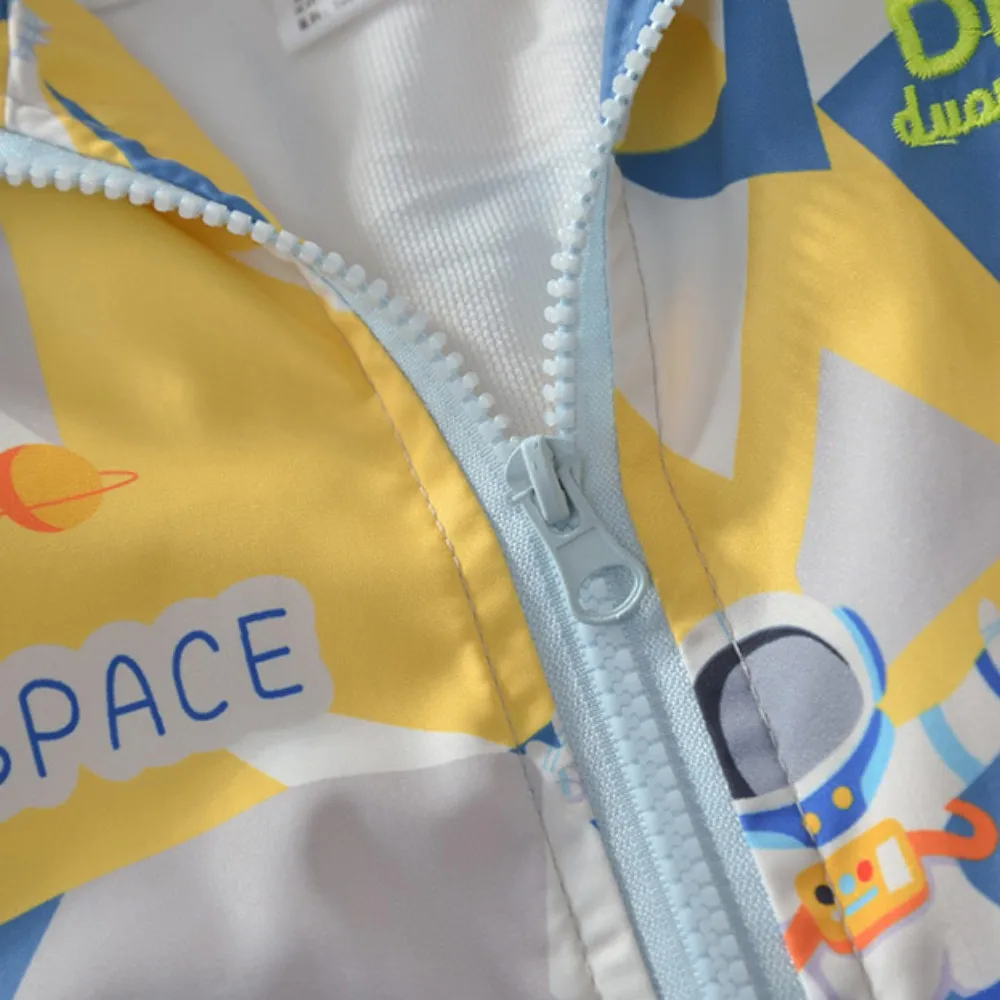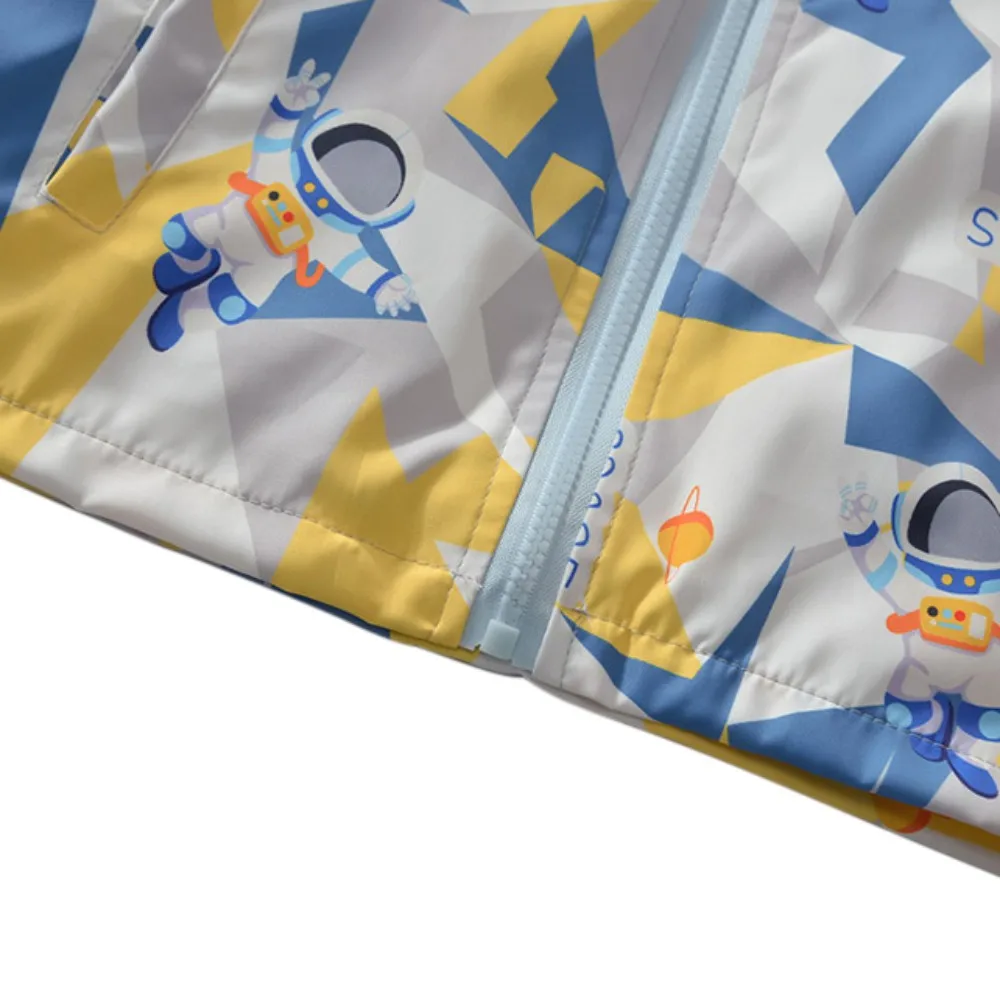 Осенняя куртка для мальчиков 4-14 лет, ветровка с капюшоном, тонкое пальто на молнии, модная верхняя одежда для подростков с мультяшным принто...