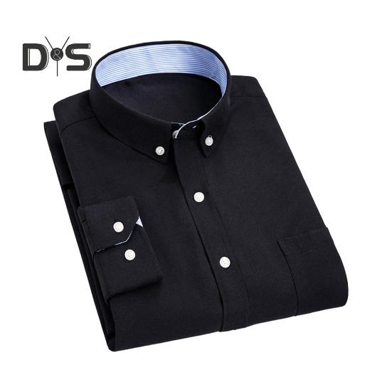 Осенняя мужская рубашка с воротником-стойкой, пуговицами, длинными рукавами, однотонная, облегающая, средней длины, повседневная, официальная, деловая, для поездок на работу 38 чёрный
