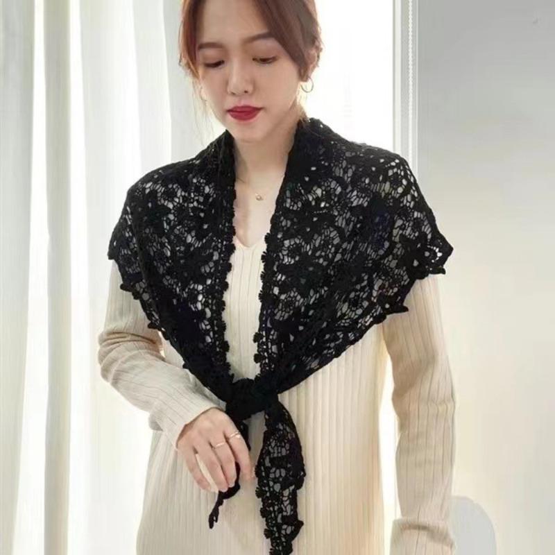 Осенняя новая корейская версия шаль модные показы темперамент мода полый цветок бутон треугольная внешняя шаль универсальный шарф 100-135CM чёрный