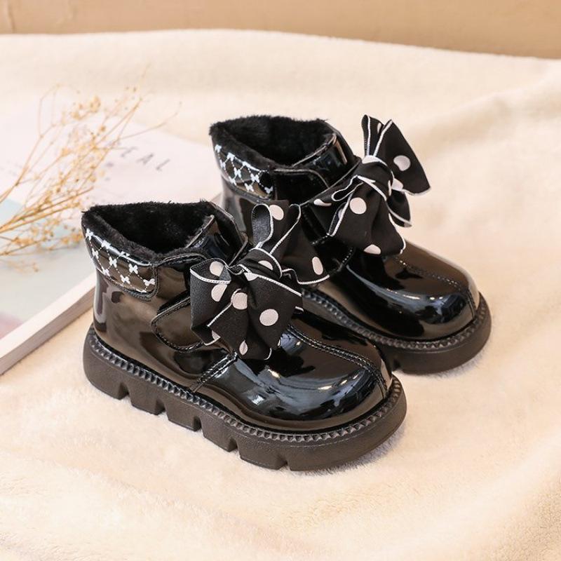 Осенняя новая модная детская обувь, модные универсальные удобные ботиночки с бантом для девочек, нескользящая подошва, простые ботильоны для принцессы 26insole16cm