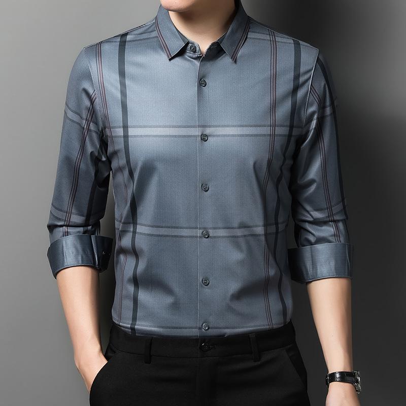 Осенняя новая одежда для папы, мужская рубашка с длинным рукавом, деловая, повседневная, клетчатая, дышащая, модная рубашка, мужская тенденция 4XL/58