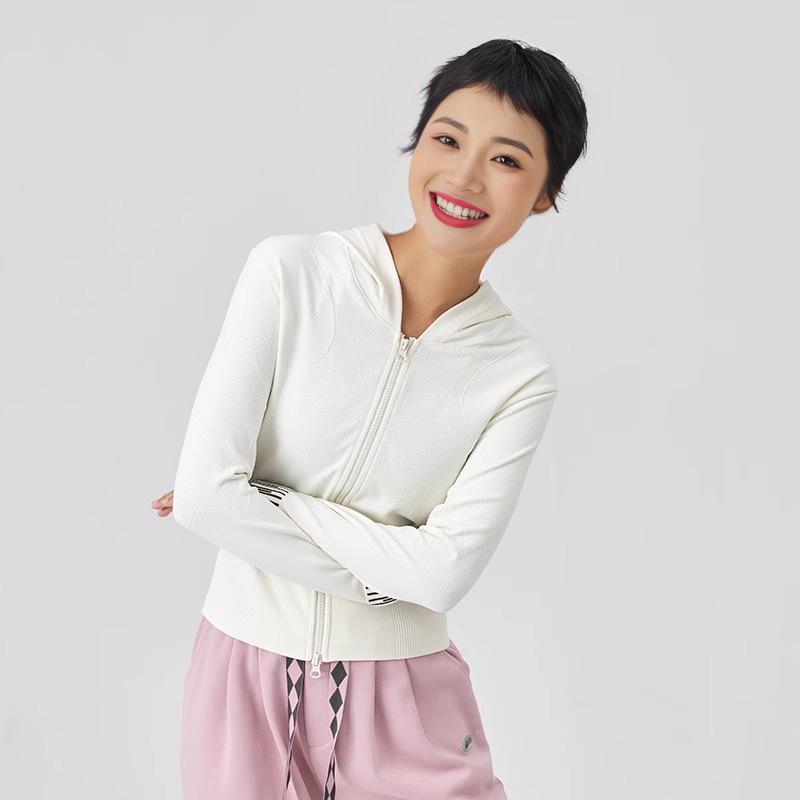 Осенняя приталенная бесшовная куртка для йоги с капюшоном и двойной молнией S (85-95 jin) слоновая кость/белый