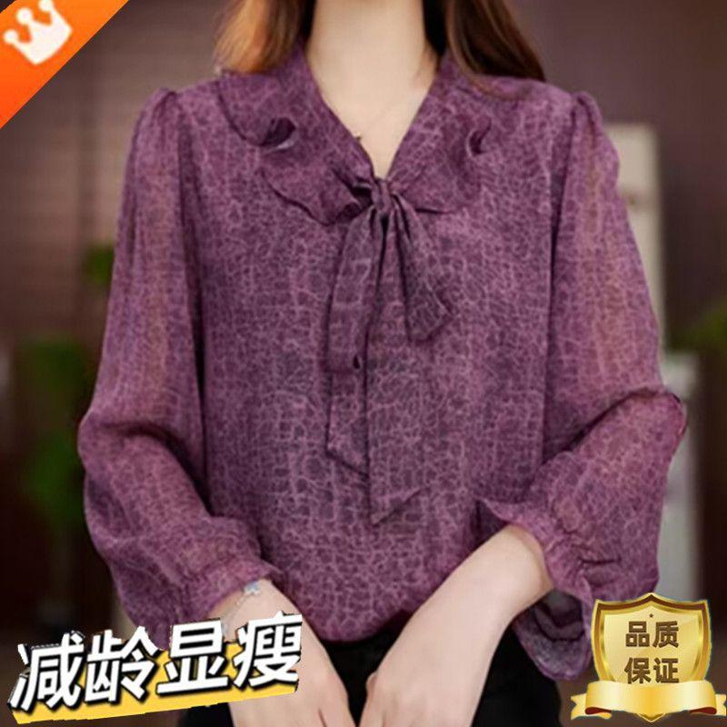 Осенняя тонкая шифоновая блузка с длинным рукавом и цветочным принтом из ледяного шелка для защиты от солнца, модная и свободная, для мамы L фиолетовый