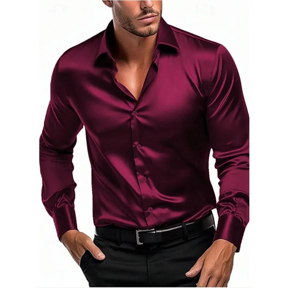 Осень Весна Формальная Мужская Рубашка с Длинным Рукавом Роскошная Устойчивая к Сминанию Не требующая Глажки Однотонная Деловая Повседневная XS
