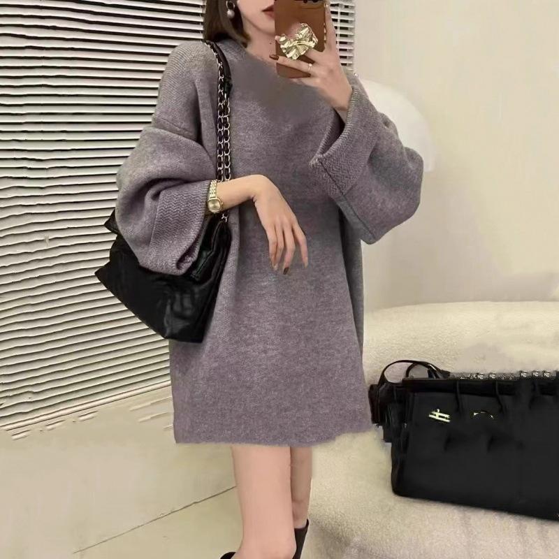 Осень и Зима Большой Размер Свитер Женский Ленивый Стиль Мягкий Восковой Верхняя Одежда Однотонный Свободный Свитер Средней Длины M серый