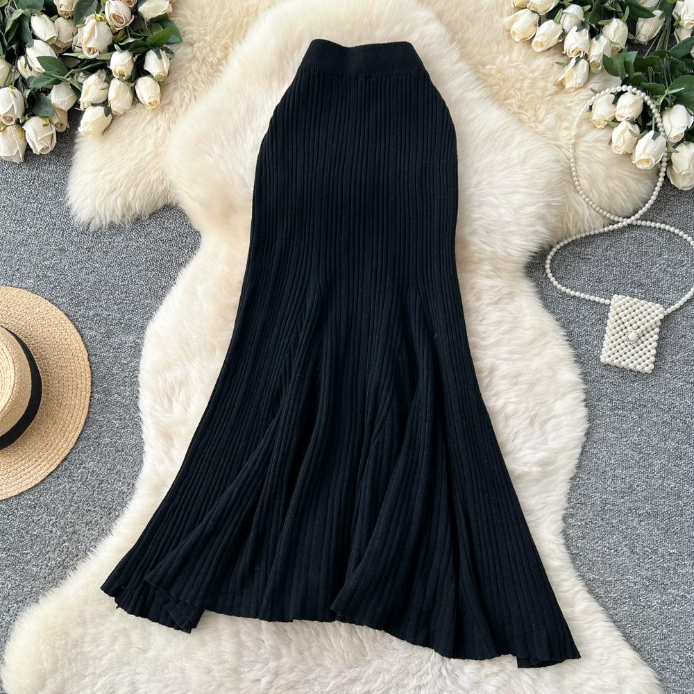 Осень Зима Женская Элегантная Вязаная Длинная Миди Юбка Годе Облегающая Фигуру One Size чёрный
