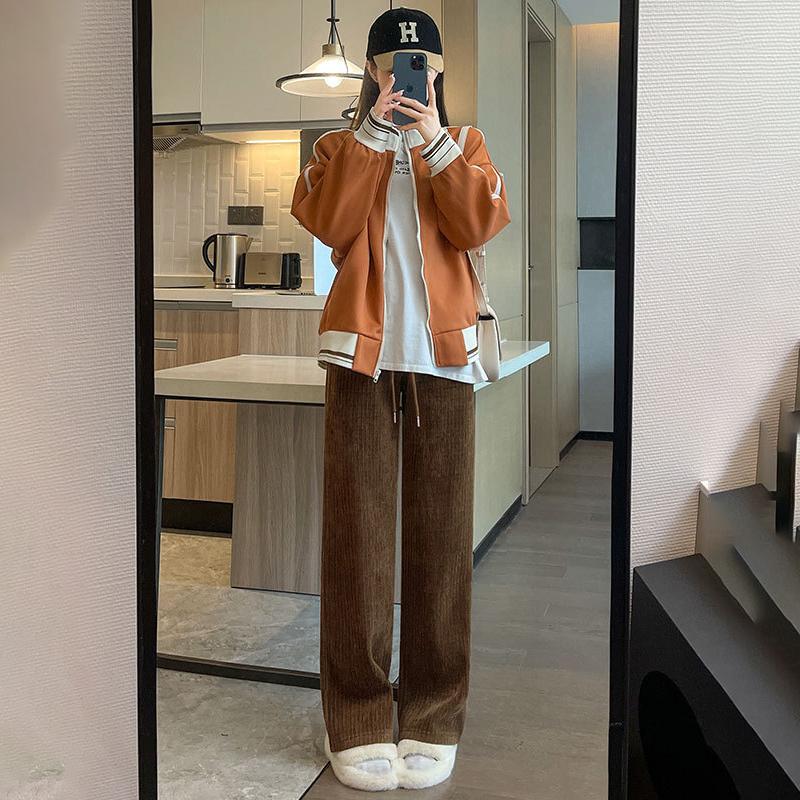 Осень Зима Женские Вельветовые Брюки с Завышенной Талией, Утепленные Бархатные Свободные Повседневные Брюки, Женские Плюшевые Брюки Широкого Кроя XL
