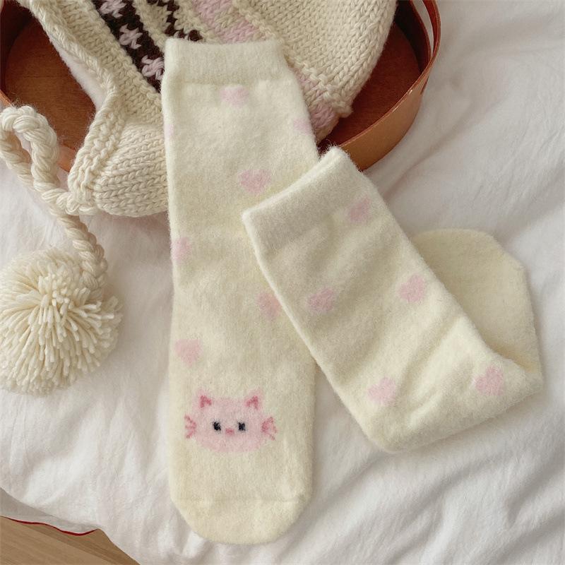 Осень и Зима Женские Мультяшные Розовые Носки до середины икры из Австралийской Шерсти, Милые и Теплые Домашние Носки для пола 1 pair