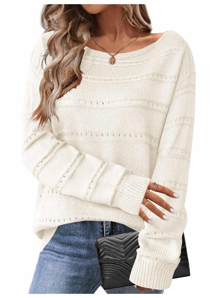 Осень Зима Женский Милый Пуловер Топ с Длинными Рукавами и Открытыми Плечами На Шнуровке Вязаный Крючком Свитер Топ Роскошный Расслабленный Крой Стройнящий и Универсальный Топ 2XL бежевый
