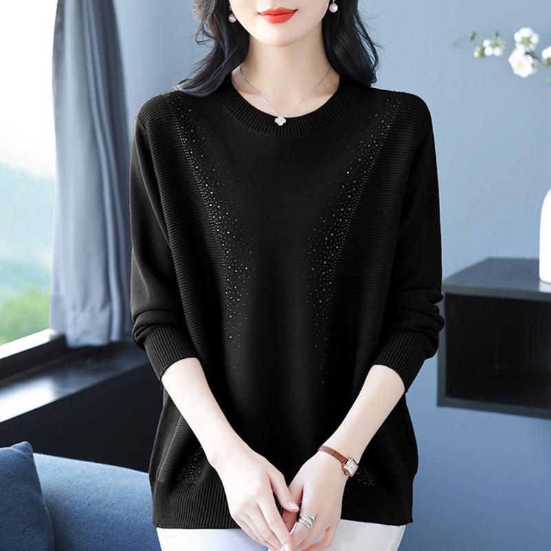 Осень Зима Женщины 2025 Новый Свитер Модный Круглый Вырез Базовая Рубашка Среднего возраста Мама Вязаный Топ ONESIZE чёрный